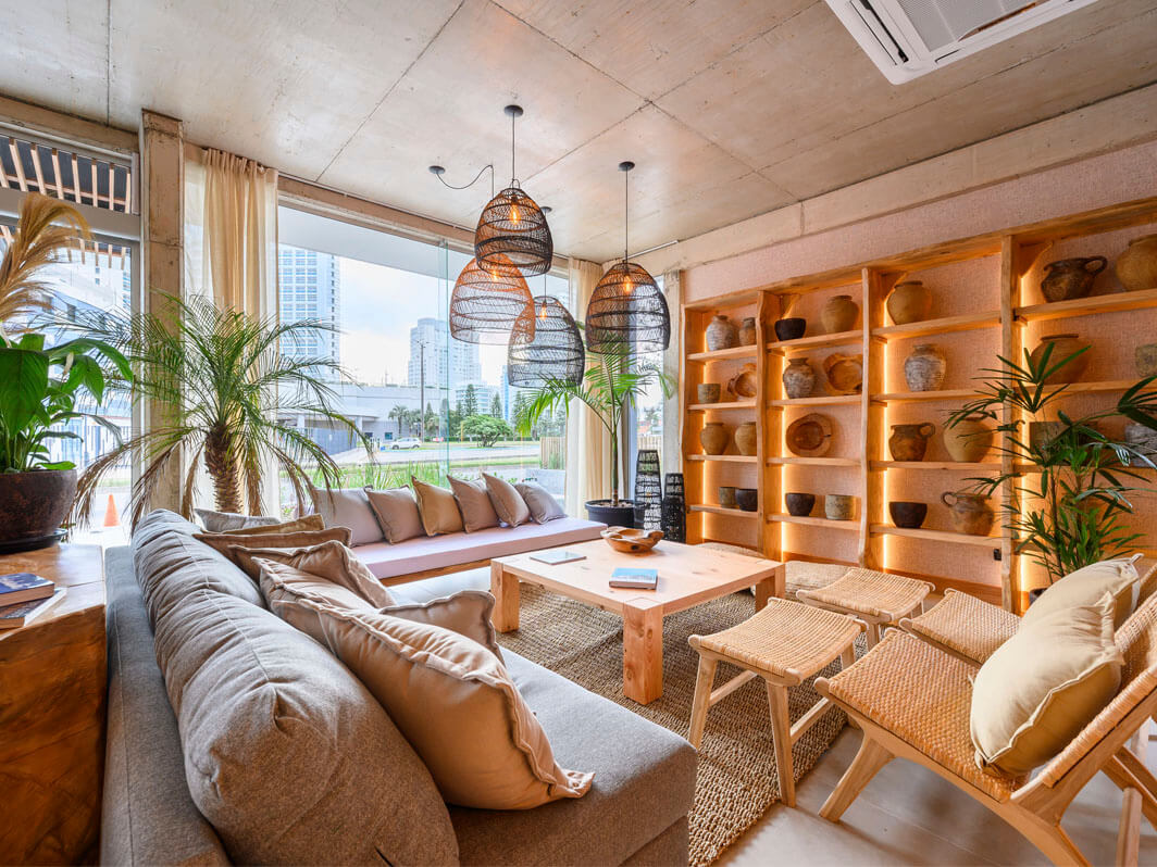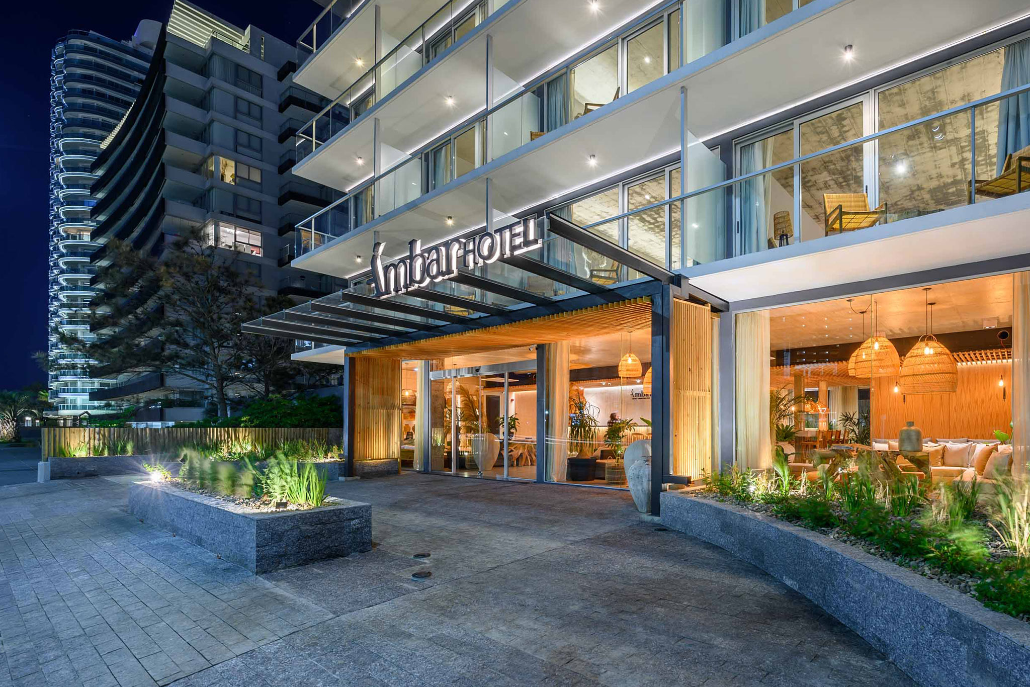 O atardecer frente con vista hacia el Conrad Enjoy y Av. principal